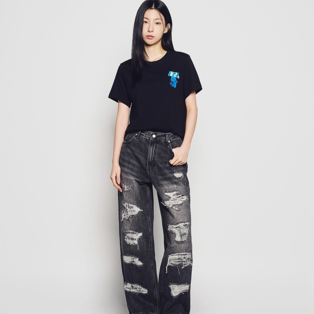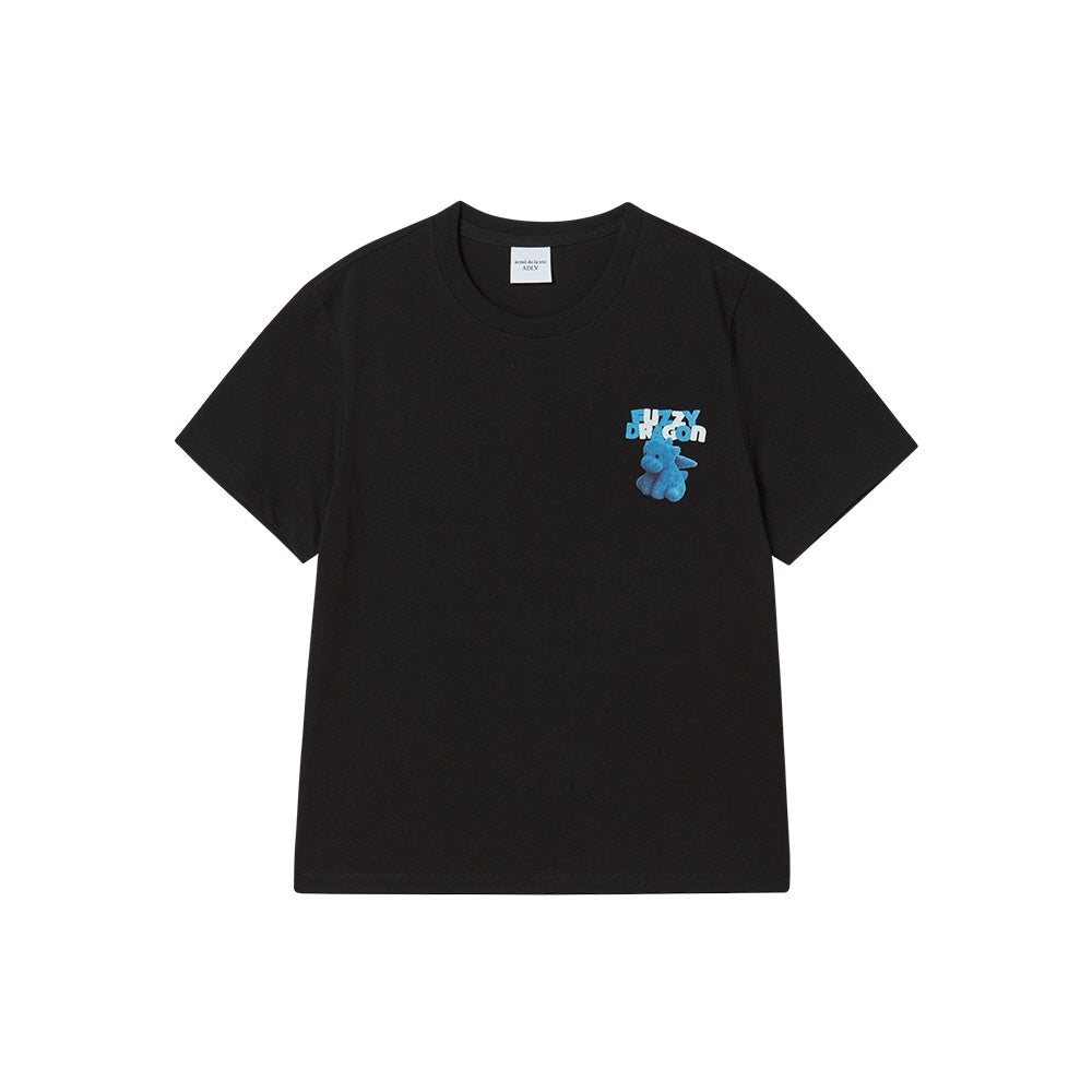 WOMAN FUZZY FONT DRAGON SHORT SLEEVE T-SHIRT BLACK