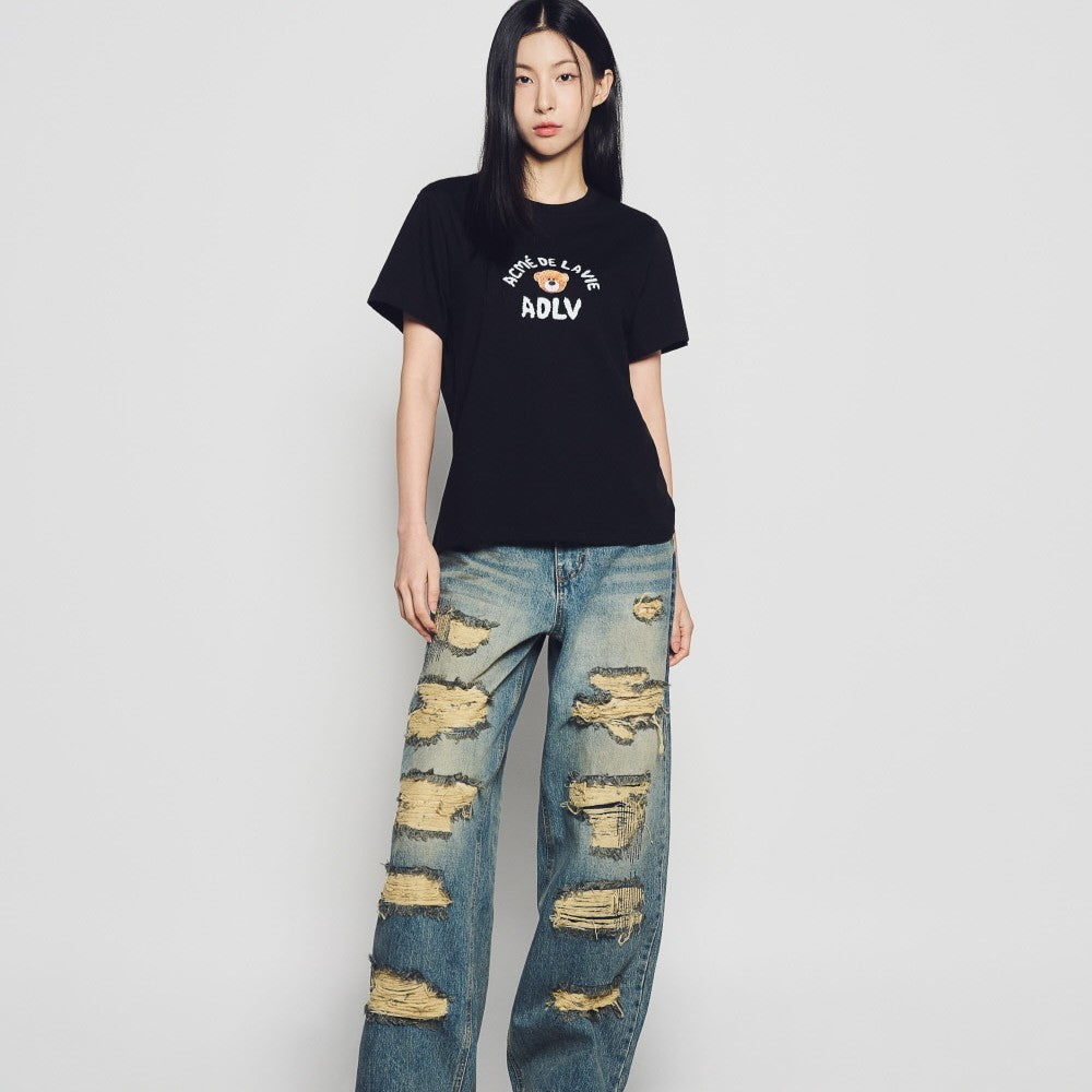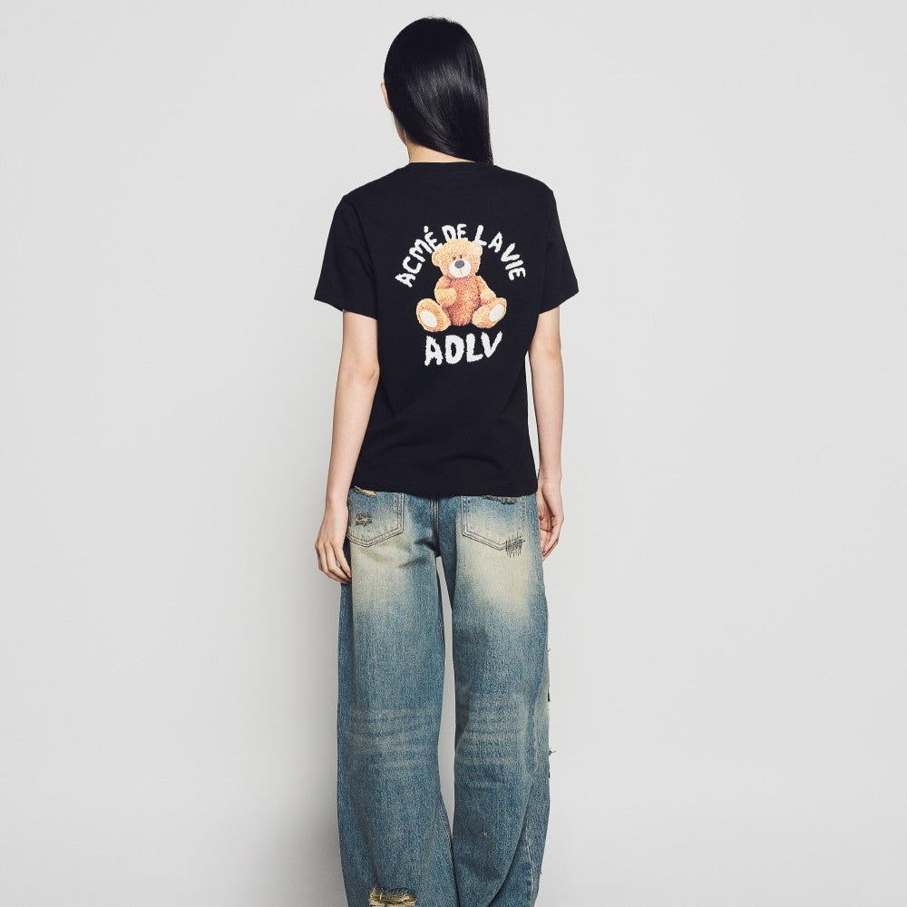 WOMAN TEDDY BEAR (BEAR DOLL) SHORT SLEEVE T-SHIRT BLACK